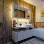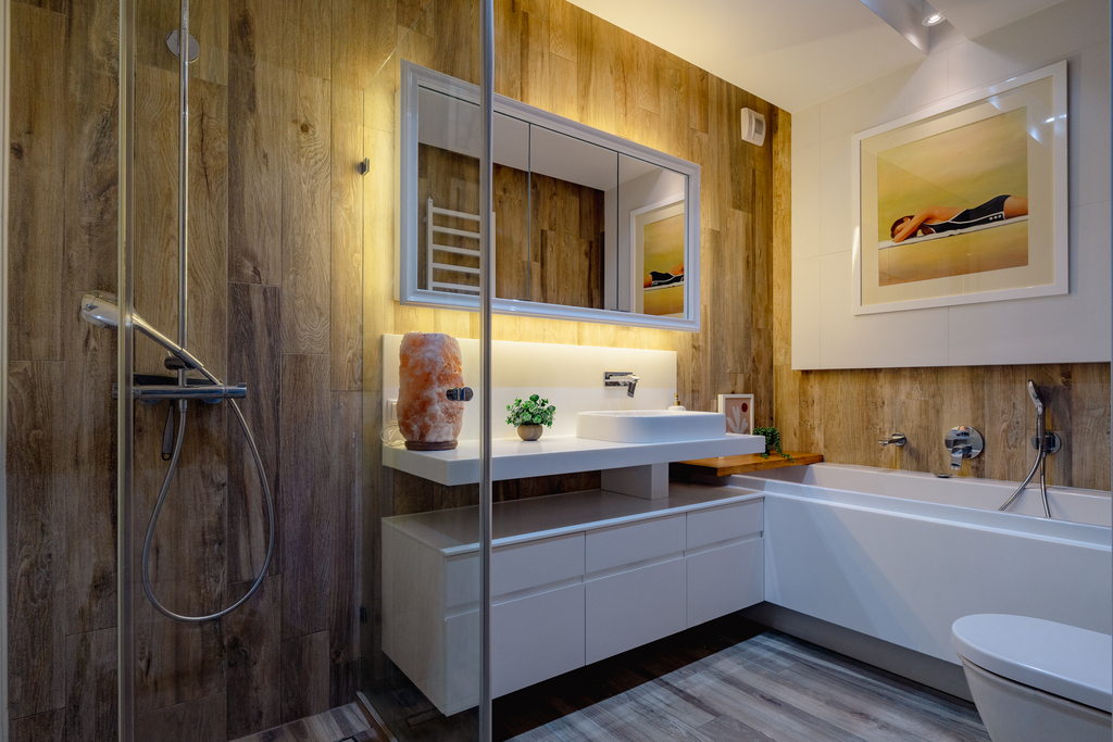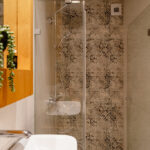 - Łazienka z wanną i prysznicem (6,53 m2) połączona z pralnią (2,5m2)
