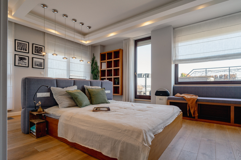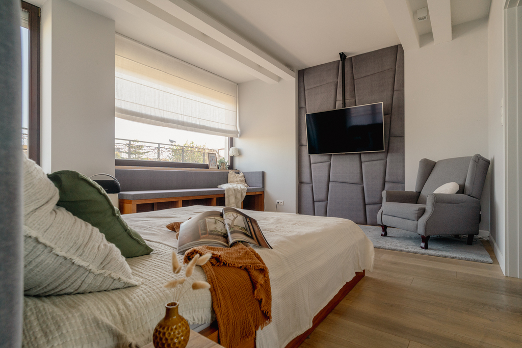 - Master Bedroom (ok.26m2) z wydzielonymi strefami, relaksu, odpoczynku oraz garderobą i osobnym wyjściem na taras