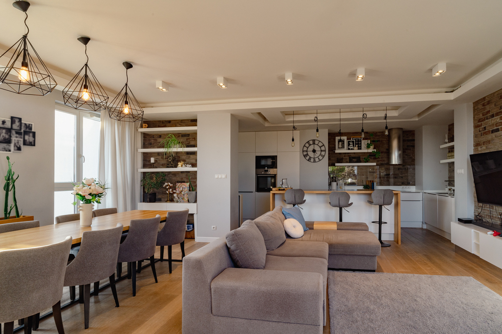 - Jasna, elegancka aranżacja wnętrza