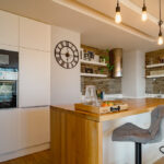 - Kuchnia w pełni wyposażona w sprzęty AGD, harmonijnie połączona z jadalnią z dużym stołem dla 10 osób. Dodatkowo spiżarnia 3m2, dzięki której łatwo utrzymać porządek w przestrzeni dziennej.