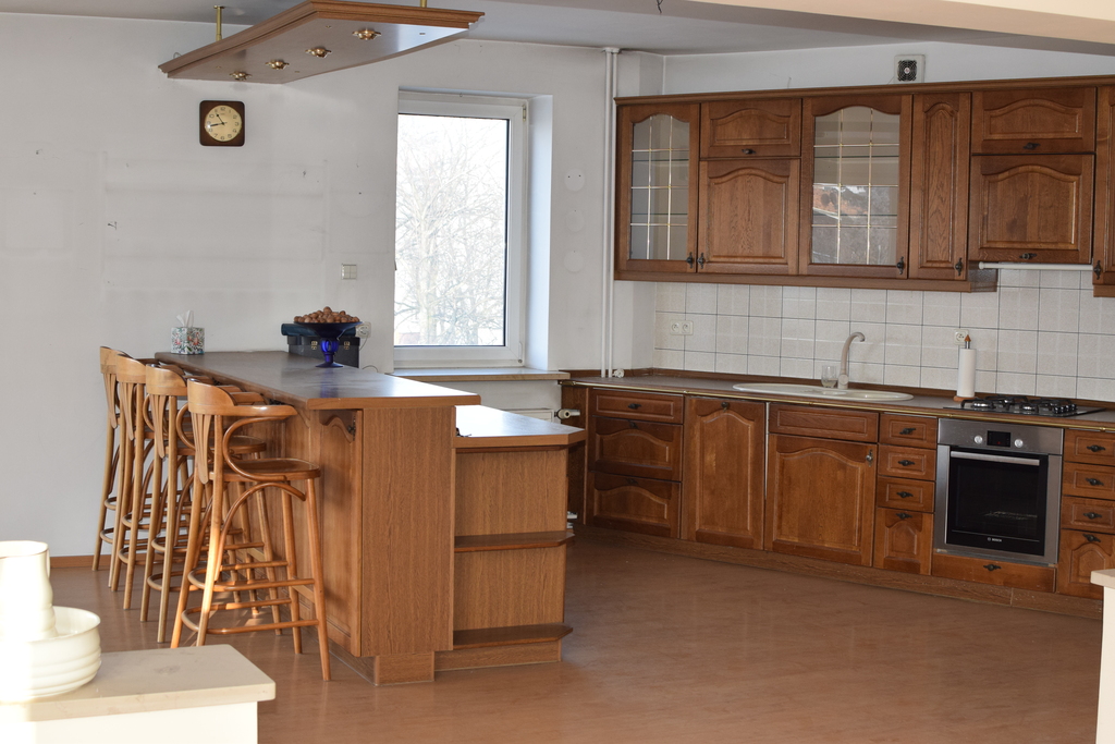 - pełne wyposażenie: zmywarka, lodówka, kuchnia gazowa z piekarnikiem, okap,
