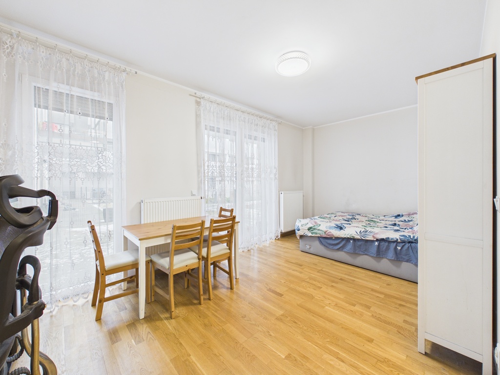 Jednopokojowe mieszkanie - kawalerkę zlokalizowaną na 4 piętrze w kompleksie budynków Atal Towers wraz z tarasem i ogródkiem.
