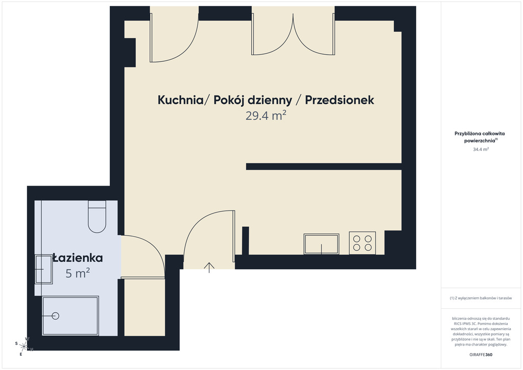 - pokój dzienny wraz z przedsionkiem (19,4 m2)