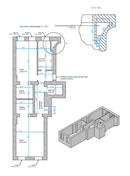 - oddzielna kuchnia z z dodatkowym pomieszczeniem pełniącym funkcję spiżarni,