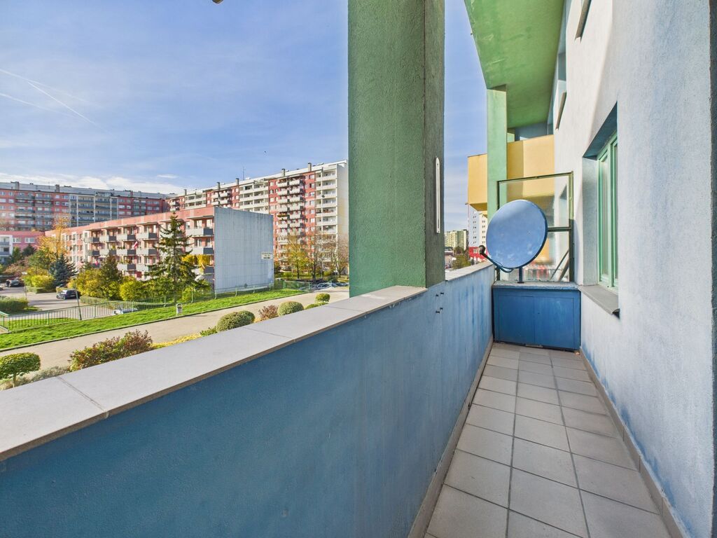 Do mieszkanie przynależy spory balkon z wyjściem z salonu.