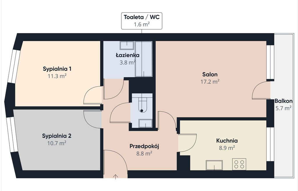 - pokój dzienny z wyjściem na balkon (17,25 m2)