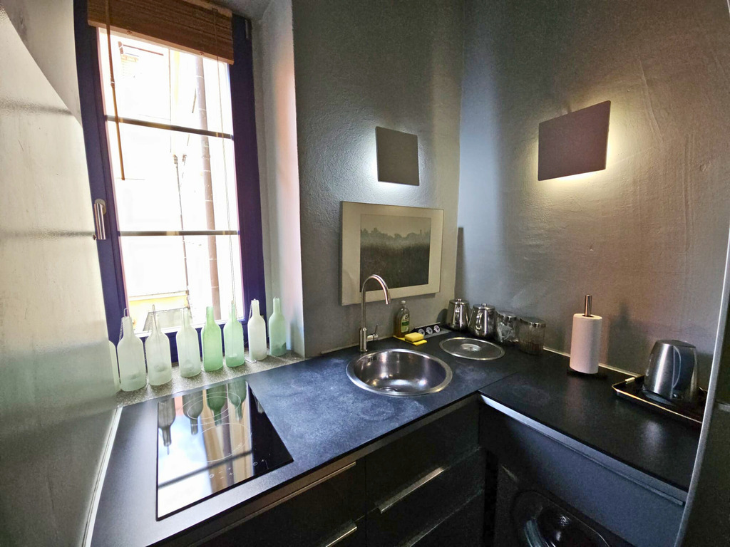 - Okna wychodzą na spokojne podwórko – mimo centralnej lokalizacji wewnątrz mieszkania panuje cisza i prywatność.