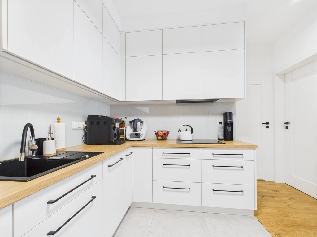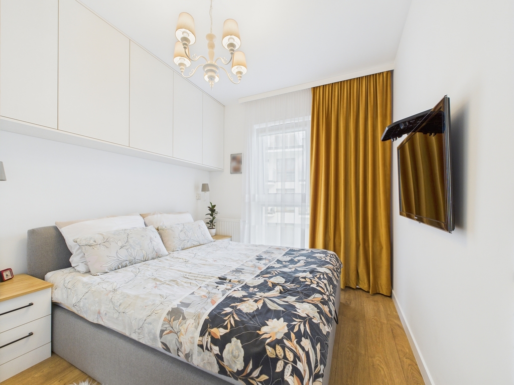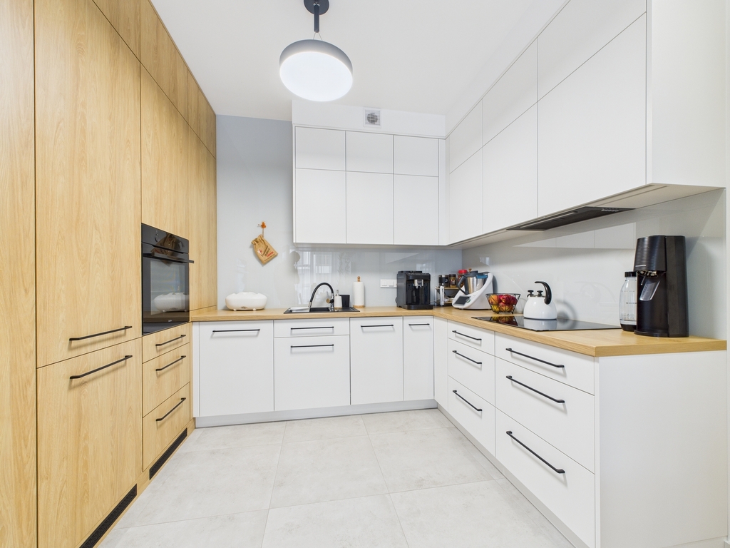 • W pełni wyposażone: wszystkie meble, AGD w zabudowie i pralka zostają