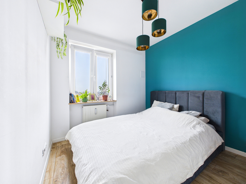 • Sypialnia – przytulna, z miejscem na duże łóżko i przechowywanie