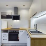 WYPOSAŻENIE Kuchnia: zabudowa meblowa, lodówka z zamrażarką, piekarnik elektryczny, płyta indukcyjna, okap, zlew, stół i 4 krzesła.