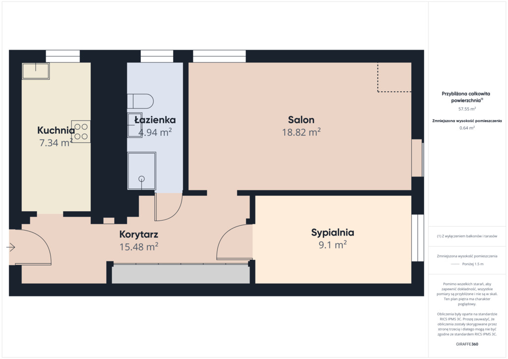 powierzchni 57,55 m2 składa się z: