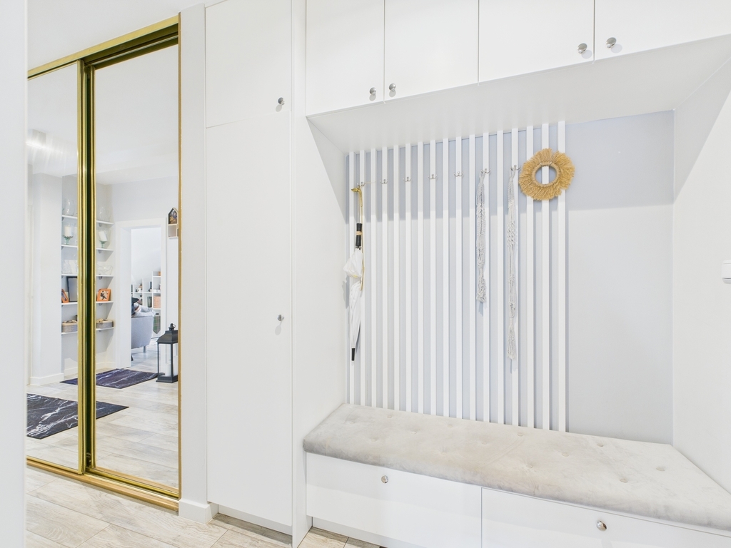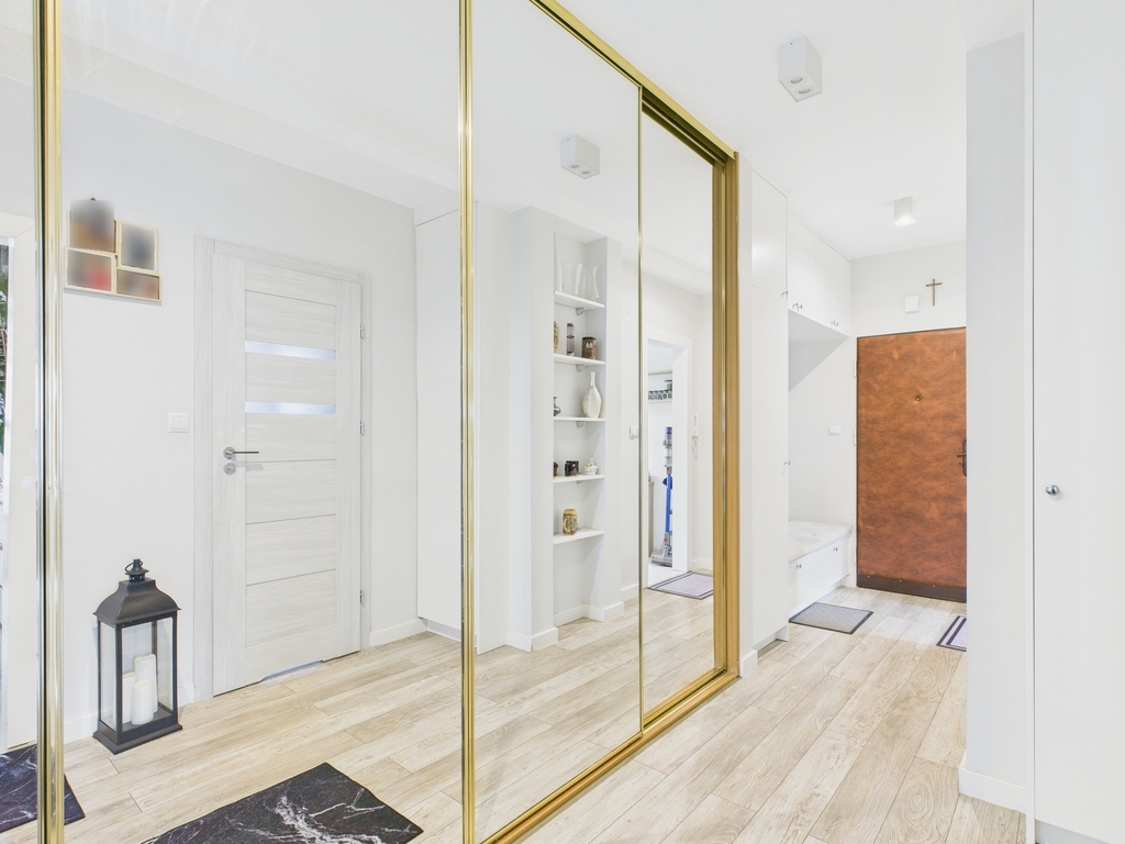 - Przedpokoju z dużą szafą w zabudowie