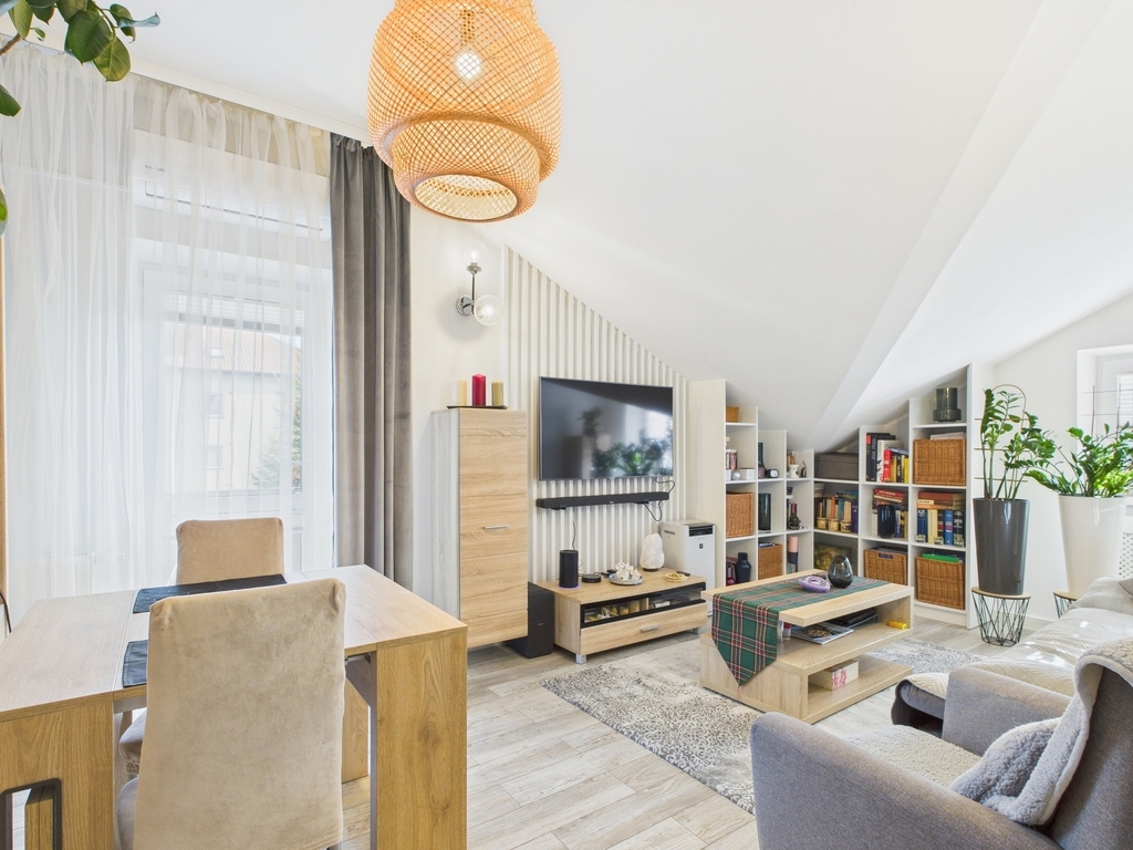 - Salonu z wydzieloną częścią jadalnianą i klimatyzacją