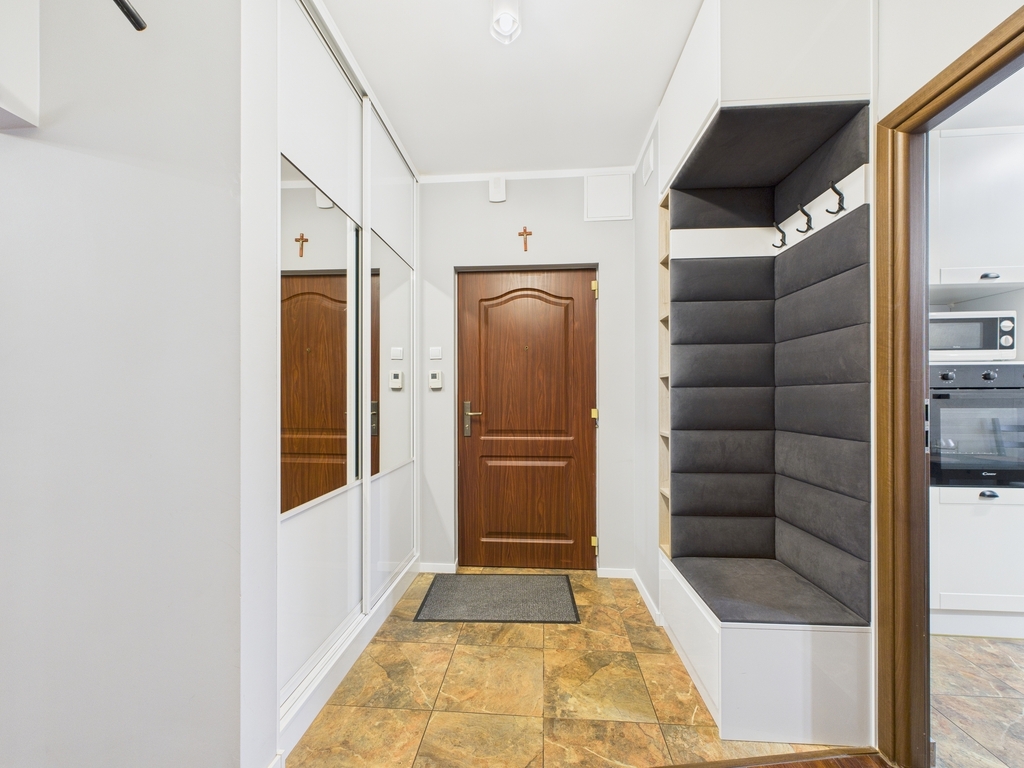 W skład mieszkania wchodzą: - Przestronny korytarz z pojemną szafą w zabudowie