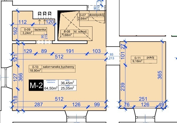 Oferowane mieszkanie ma 64,5 m2, znajdziemy w nim: