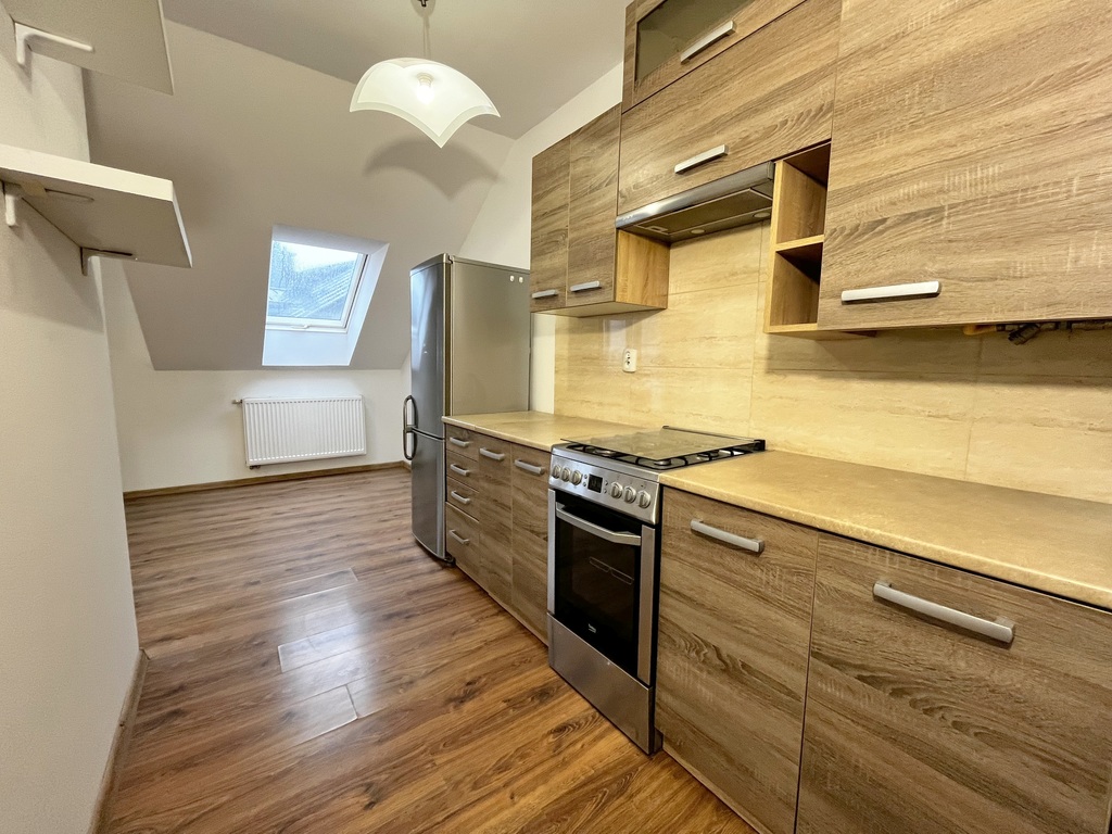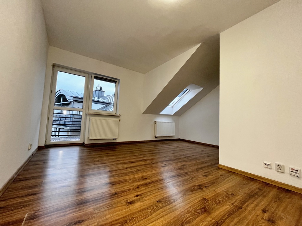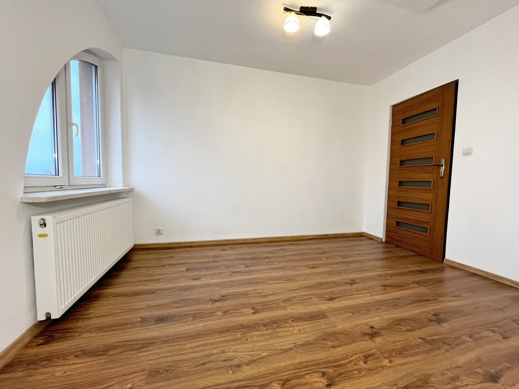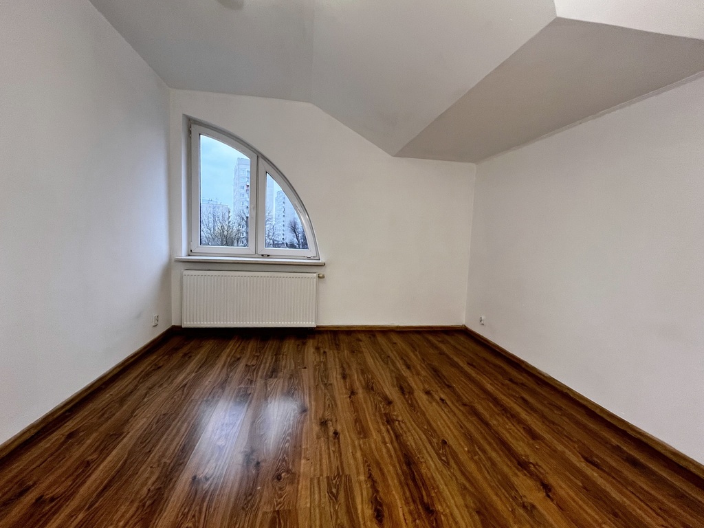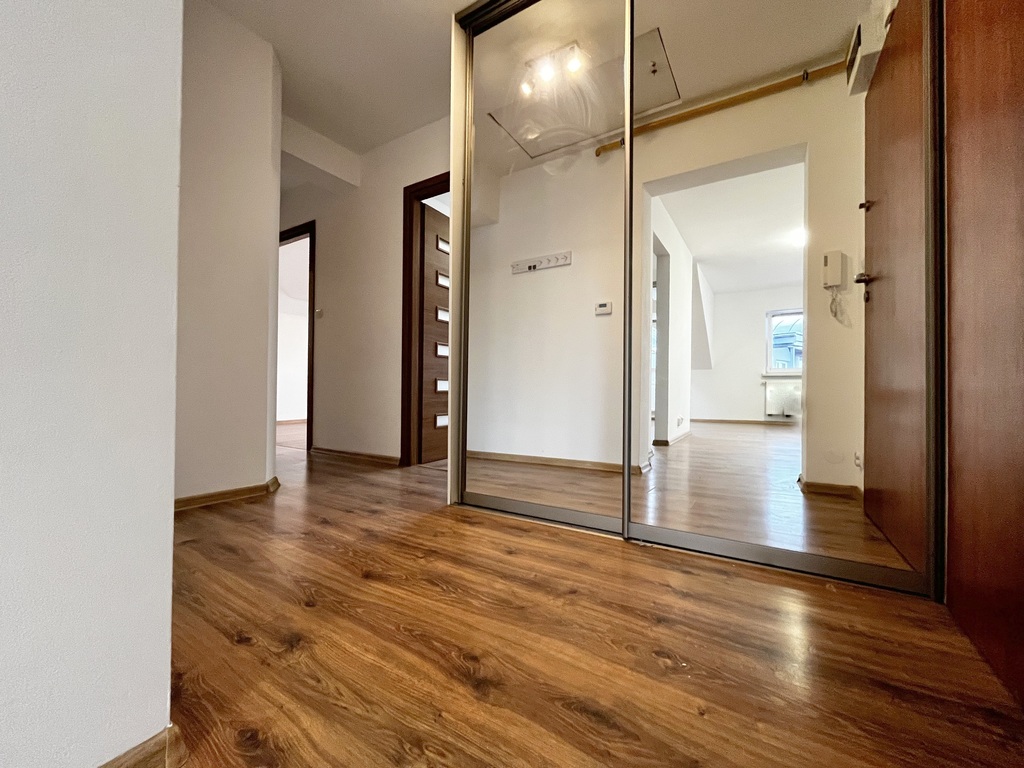 Nieruchomość składa się z 3 pokoi, widnej, ciekawie zabudowanej i pół-otwartej kuchni z wydzielonym miejscem na jadalnię, przestronnej łazienki z  wanną, wc i dodatkowego (nie liczonego do metrażu mieszkania) pomieszczenia na poddaszu. W salonie znajduje się wyjście na balkon.