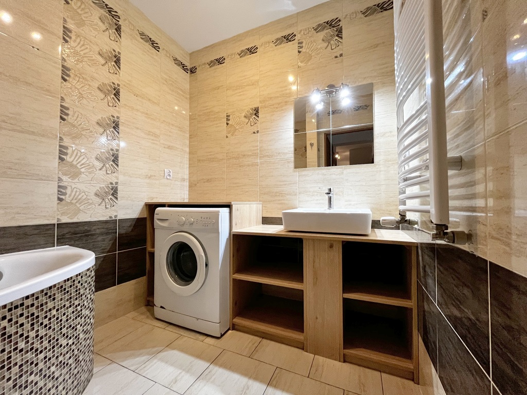 Łazienka oraz wc są umeblowane oraz wyposażone w niezbędne sprzęty.
