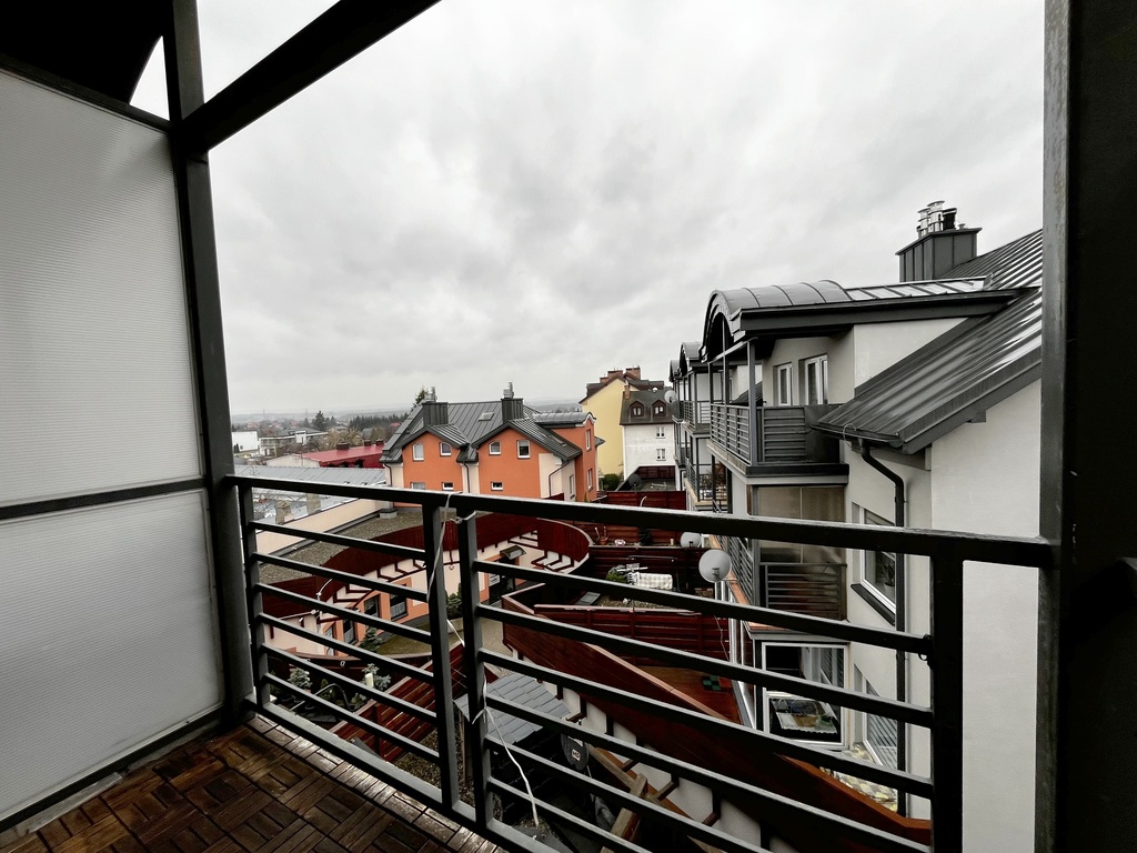 *Mieszkanie posiada przestronny balkon na którym swobodnie można postawić zestaw wypoczynkowy. Z balkonu roztacza się rozległy widok miasto oraz widoczne na horyzoncie lasy i pola.