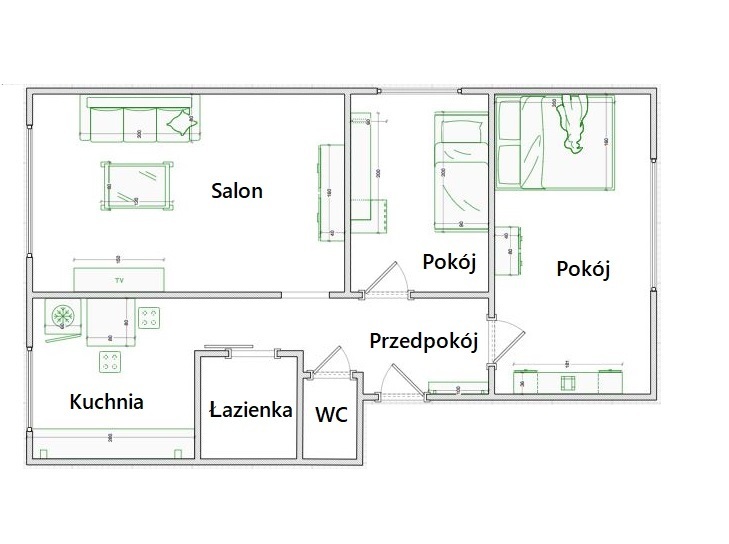 - dwóch sypialni;