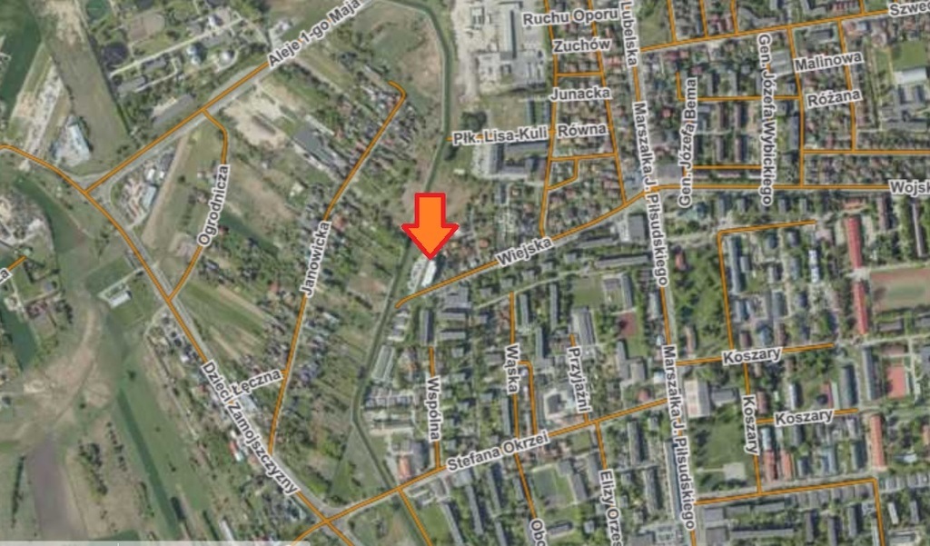 Wiejska 28, budynek z widokiem na rzekę Łabuńkę