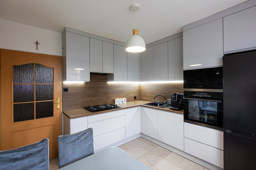 Kuchnia – jasna, przestronna, świeżo po remoncie, wyposażona w nowoczesną zabudowę. Idealna dla osób ceniących estetykę i praktyczne rozwiązania.