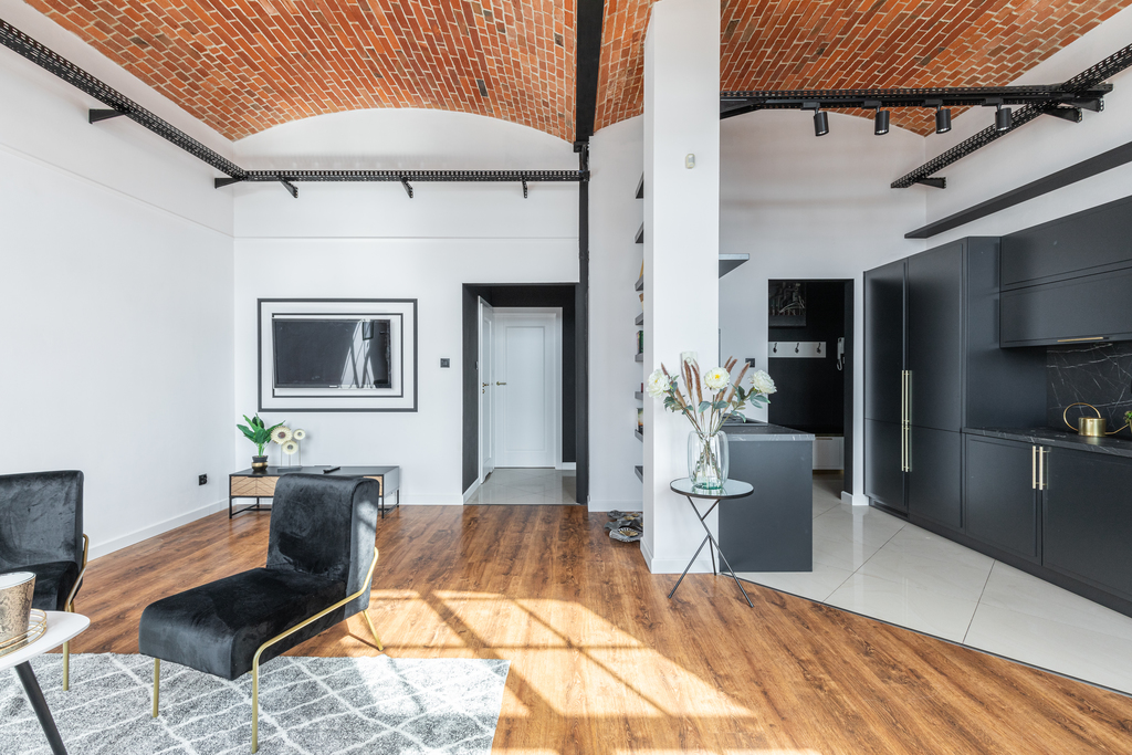 Na sprzedaż oferuję wykończony pod klucz w wysokim standardzie Apartament loftowy o pow. 63,41 m² usytuowany na 1 piętrze industrialnego budynku Stara Przędzalnia II.