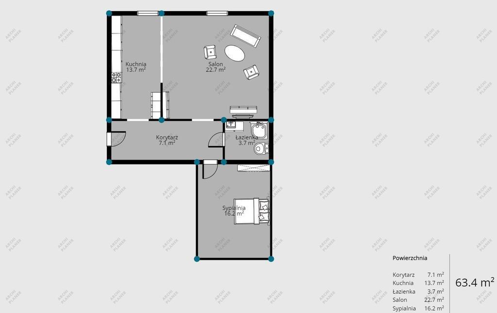 Przedstawione wizualizacje i grafiki mają charakter wyłącznie poglądowy i stanowią wyłącznie materiał pomocniczy, ułatwiający zorientowanie się w ogólnym wyglądzie oferowanej nieruchomości.