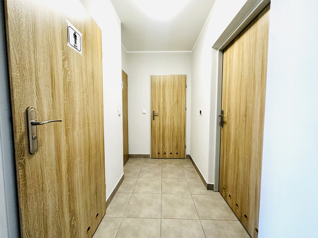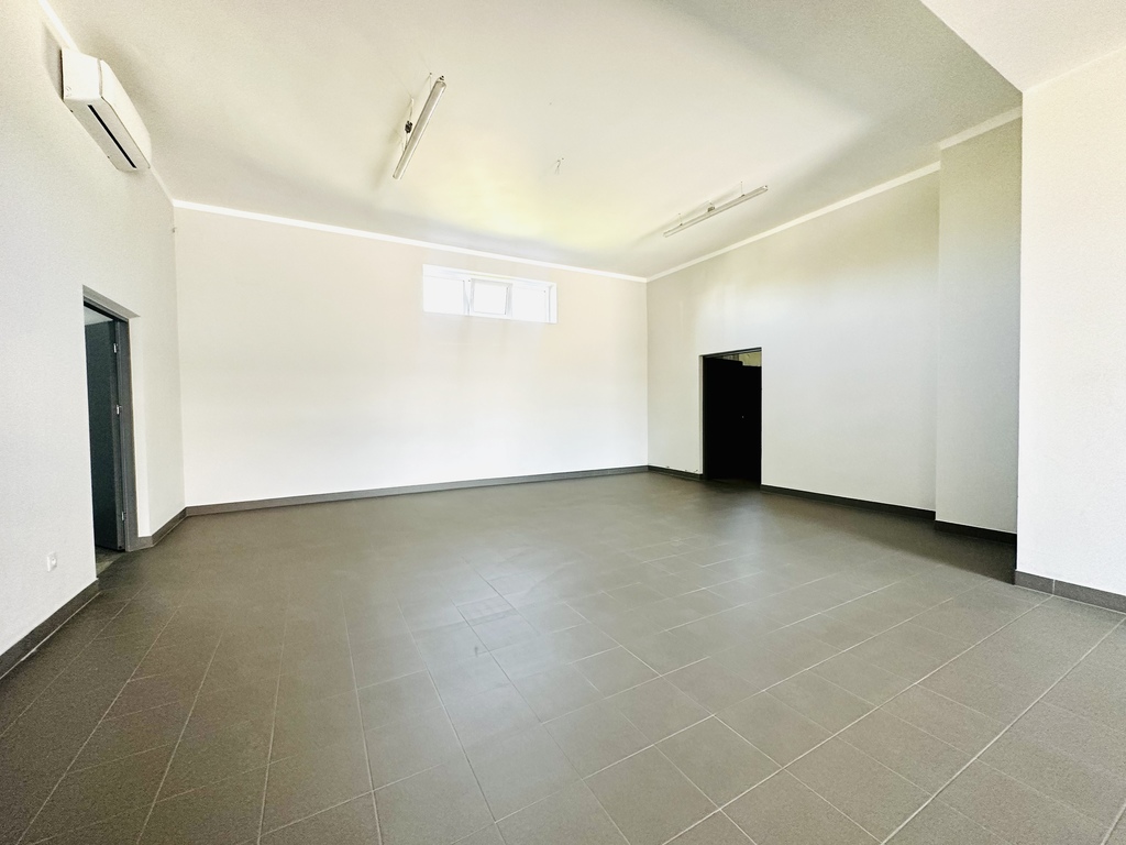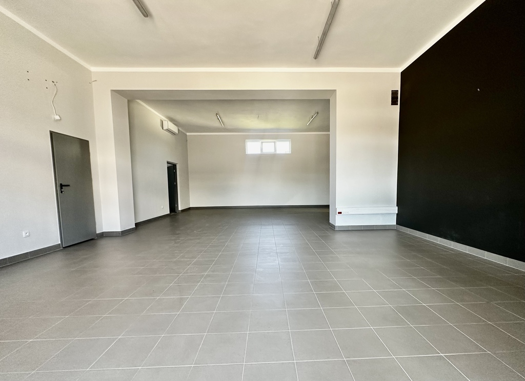Parter (250m²): Klimatyzowane pomieszczenia biurowe, 2 WC, kuchnia oraz magazyn.