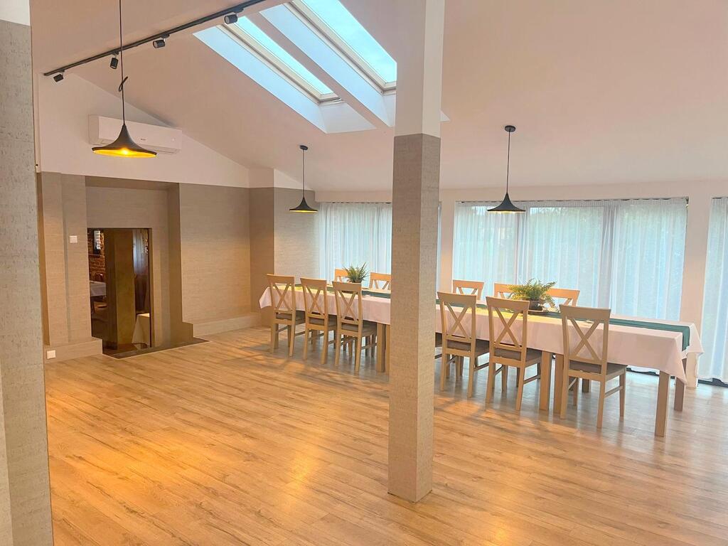 Lokal posiada dwie sale weselne, 3 łazienki dostępne dla gości weselnych, 5 pokoi noclegowych znajdujące się na piętrze budynku z niezależna łazienką.