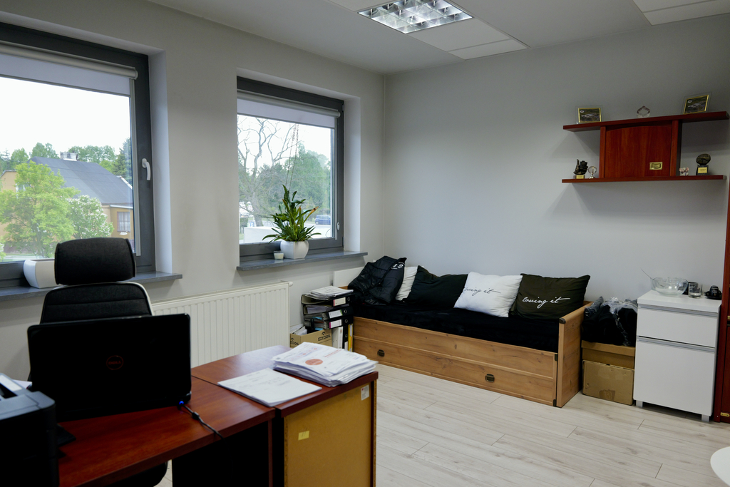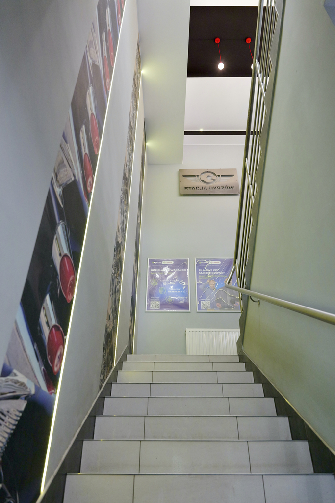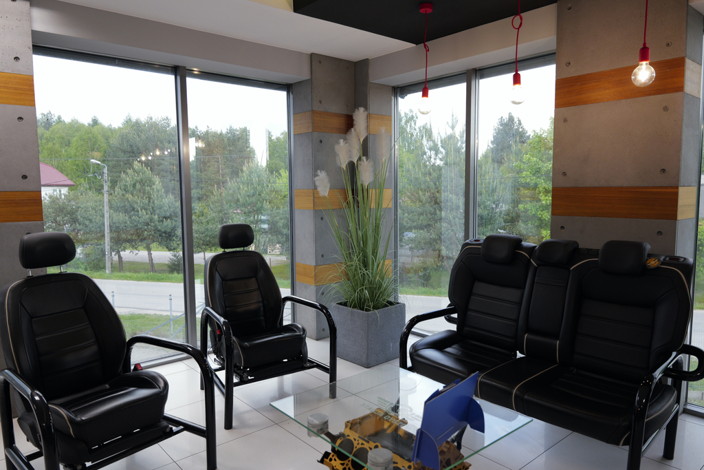 Na górze budynku jest klimatyzowany salonik, gdzie podczas naprawy samochodu jego właściciel będzie mógł napić się kawy.