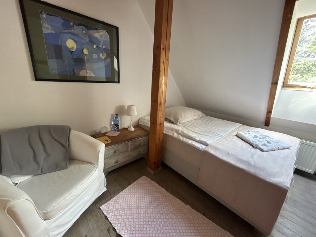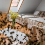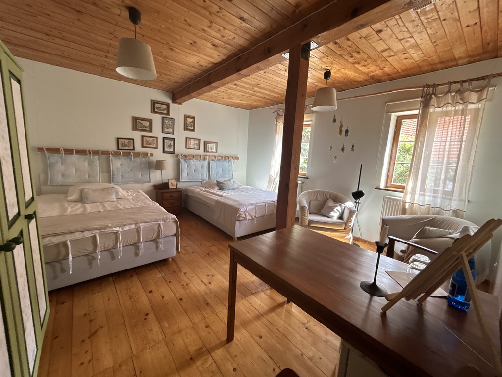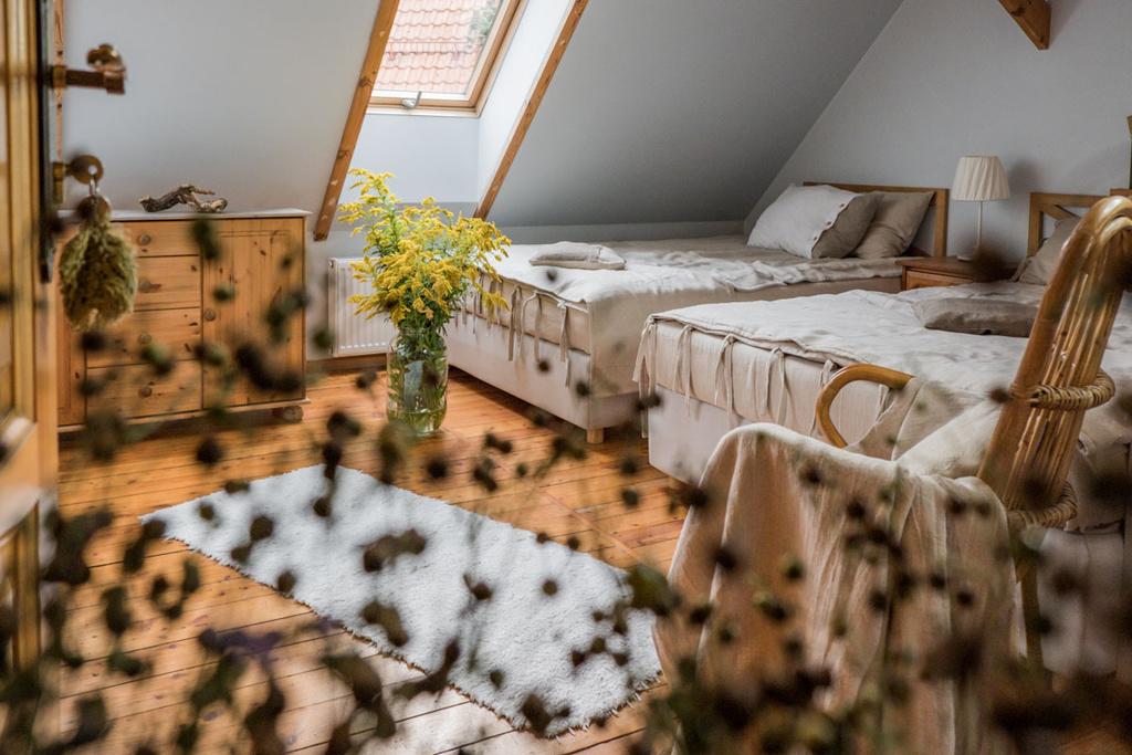 Obecnie mamy tutaj 10 miejsce noclegowych ale może ich być 14 plus apartament 150m2, który komfortowo pomieści 6 osób. Założenia są aby goście czuli się komfortowo i mieli poczucie wolności i przestrzeni.