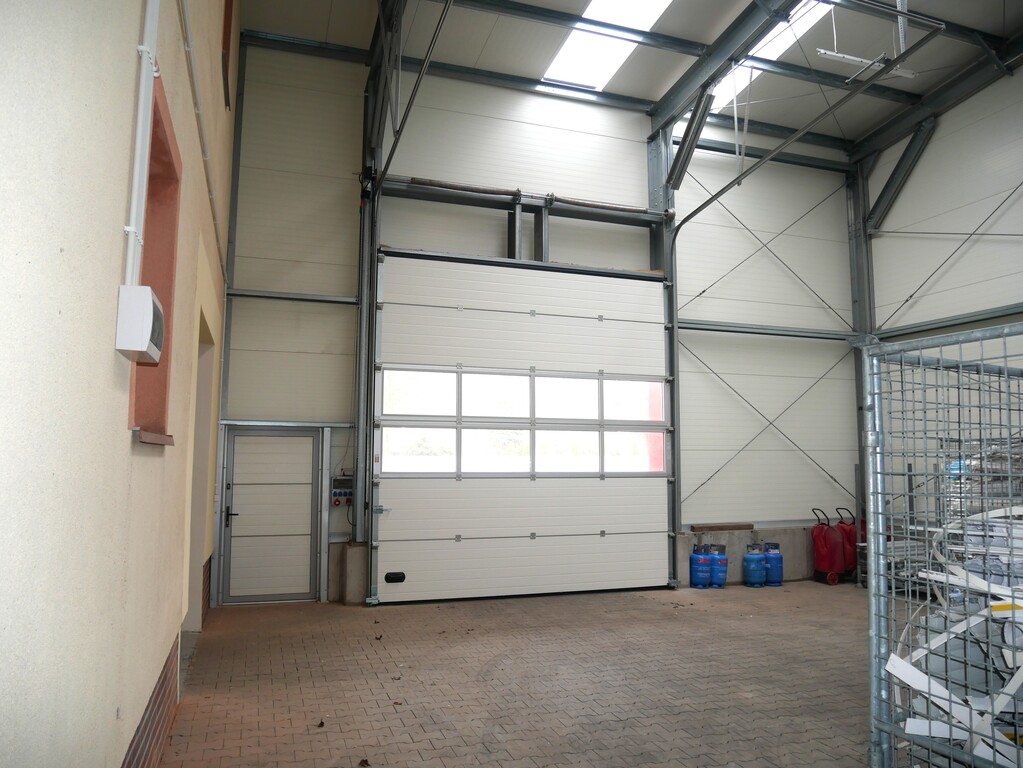 - Hala produkcyjna o powierzchni 120 m2 z bramą wjazdową wysokości 7,6 m,