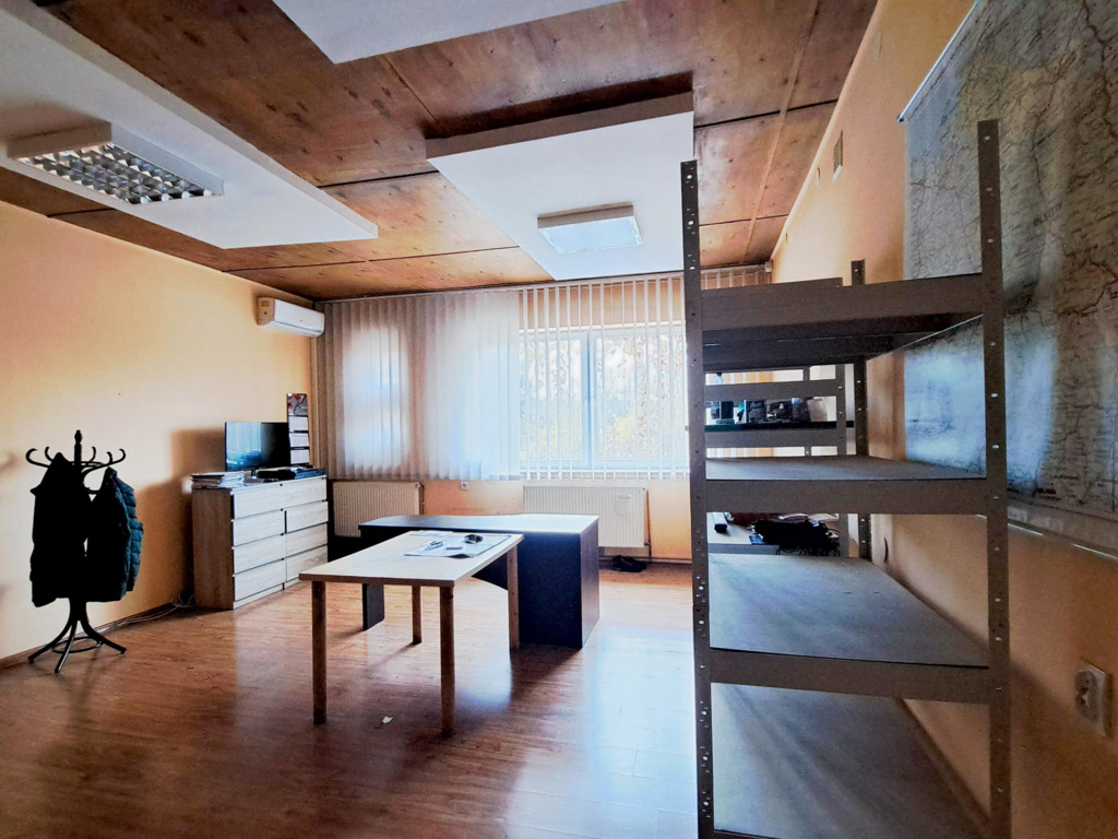 Powierzchnie biurowe ( 300m2), są również klimatyzowane i wyposażone w stałą biurową zabudowę.