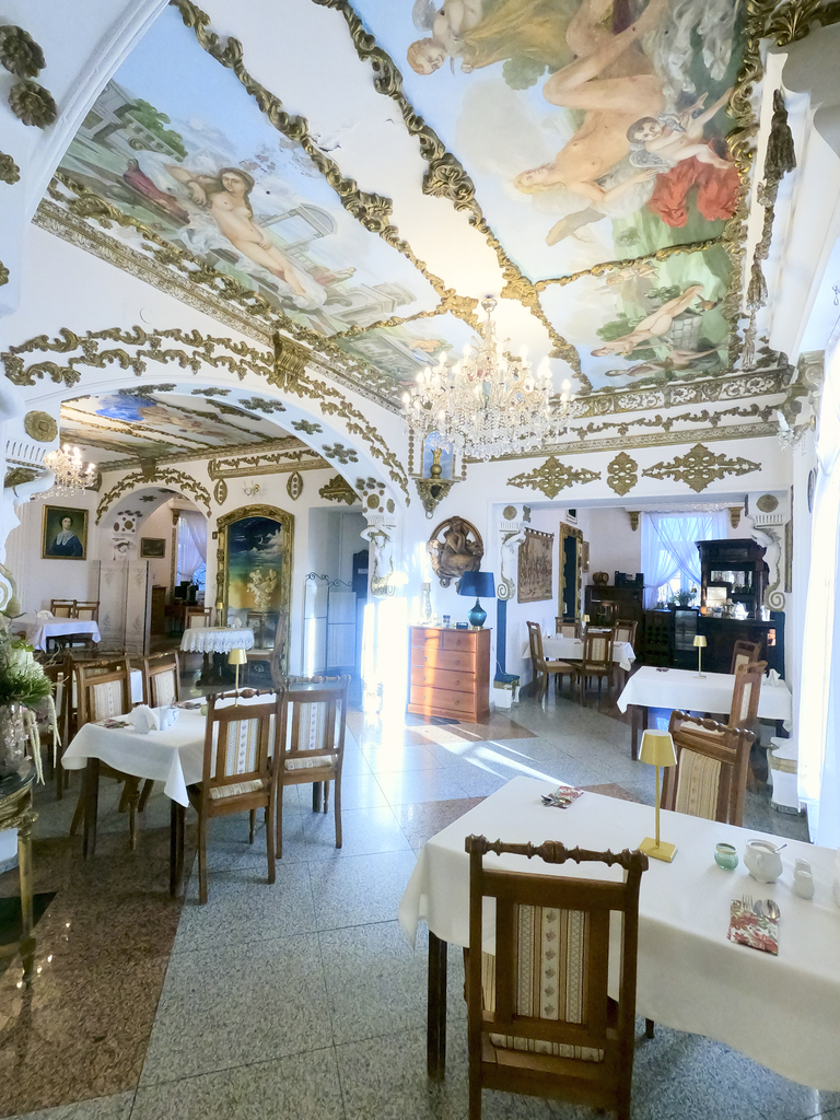 Pałac, przebudowany pod koniec XIX wieku i gruntownie odrestaurowany w latach 2002–2008, to trzykondygnacyjny obiekt o łącznej powierzchni ok. 1000 m², pełniący funkcję hotelu trzygwiazdkowego. na wysokim parterze znajdują się sale konferencyjne i balowe na poddaszu – stylowe pokoje hotelowe, w pełni wyposażone, umeblowane klasycznymi meblami Pod pałacem znajdują się nieodkryte lochy, skrywające swoją tajemniczą historię…
