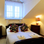 Pałac słynie ze swoich niezwykłych właściwości sprzyjających wypoczynkowi – goście zmagający się z bezsennością podkreślają wyjątkową jakość snu i regeneracji. Obiekt gościł wiele znamienitych osobistości, w tym Prezydenta RP. HISTORIA Pałac został wybudowany w 1820 roku przez Jerzego Dobrzańskiego jako siedziba zarządu pobliskich kuźniarek. Jego portal zdobi wizerunek celtyckiej kobiety, symbolizującej szczęście i pomyślność. W XIX wieku nieruchomość przeszła w ręce rodziny Wielopolskich, a wnętrza zachwycały freskami inspirowanymi irlandzkimi legendami i narodzinami św. Brygidy. Lustra i lustrzane portyki miały – według celtyckich wierzeń – chronić mieszkańców przed złymi mocami i wprowadzać harmonię. Po burzliwej historii powojennej obiekt odzyskał dawny blask dzięki kompleksowej renowacji, a następnie został zakupiony przez Państwa Tarnowskich, którzy stworzyli tu elegancki hotel. W 2019 roku przeprowadzono remont pokoi, a w 2021 roku oddano do użytku klimatyczne SPA. To miejsce trzeba zobaczyć. Słowa nie są w stanie oddać jego atmosfery, historii i niezwykłej energii. Czekamy na propozycje cenowe. Szczegółowych informacji udzielimy pod numerami: 793 333 332 | 533 213 433