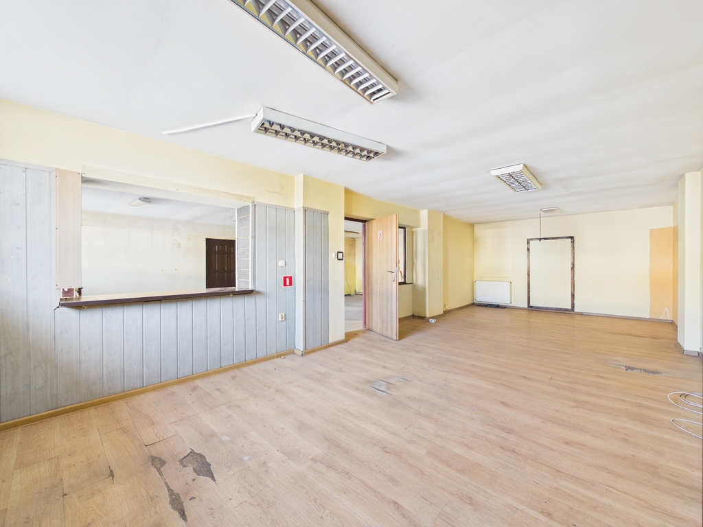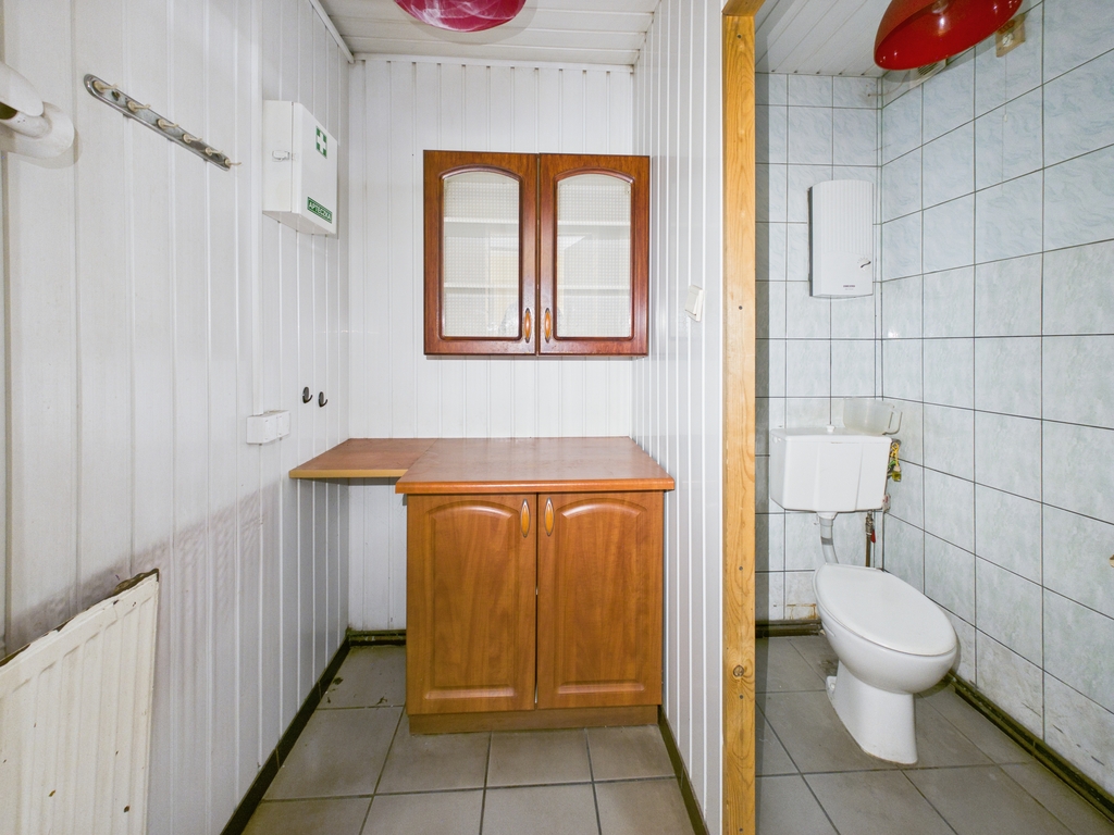 zaplecze biurowo–socjalne, obejmujące dwa przestronne pomieszczenia o powierzchni 46,5 m² oraz 36,6 m², a także część socjalną składającą się z kuchni (7,9 m²) oraz dwóch łazienek (3,8 m² i 3,6 m²).