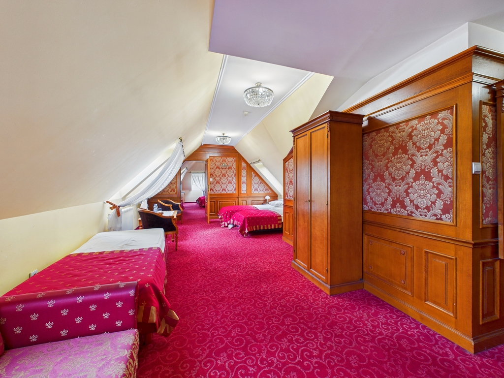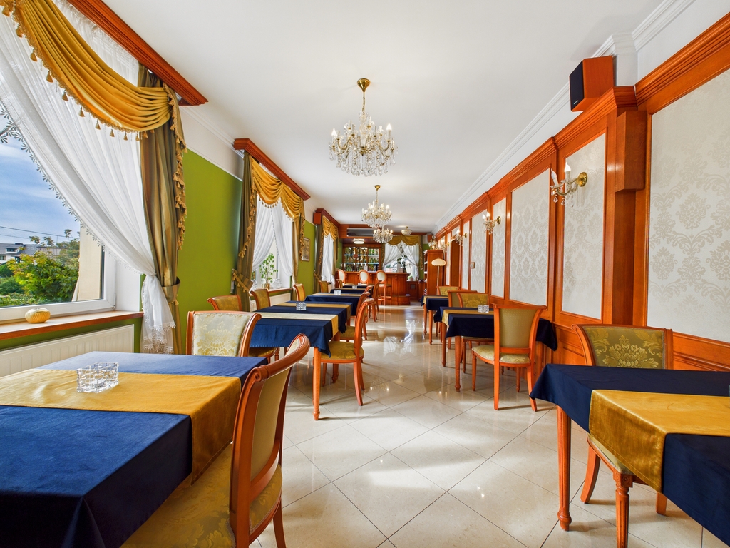 Budynek , który Państwu prezentujemy ma świetną lokalizację i dlatego jest to niewątpliwie bardzo ciekawe miejsce i nietuzinkowa propozycja . Budynek, który ma cztery poziomy : podpiwniczenie -1, parter 0, piętro 1 i poddasze 2, zajmuje centralne miejsce na dość dużej bo ponad 13 arowej działce. W części hotelowej mieszczą się przestronne pokoje i apartamenty oraz duża sala restauracyjna na 30-40 osób , trzy sale konferencyjne mogące pomieścić , strefa wellness . Strefa SPA obejmuje - grotę solną , solarium , saunę i gabinet masażu. Wszystkie pokoje są klimatyzowane i z łazienkami. Niektóre dysponują dodatkowo częścią wypoczynkową. Od strony ulicy Słowackiego mamy wejście główne z dwoma tarasami letnimi , a po bokach i z tyłu hotelu są ciągi komunikacyjne z miejscami parkingowymi dla 20 samochodów oraz dodatkowe 2 wejścia do budynku .