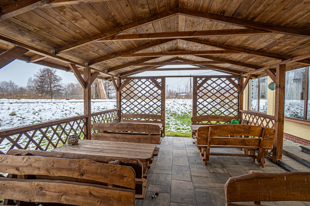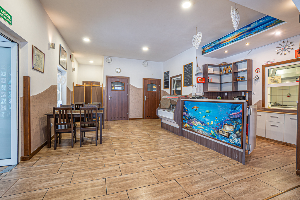 Budynek przygotowany do profesjonalnej gastronomii. Sam obiekt jest konstrukcji murowanej, parterowej, z solidnym dachem ceramicznym i ocieploną elewacją w bardzo dobrym stanie. Wnętrza wykonano tak, by sprostały intensywnej pracy kuchni: