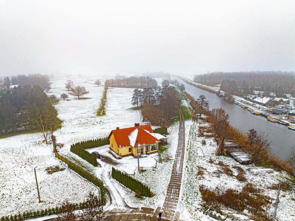Położenie nad samą rzeką Pasłęką, z widokiem na marinę i żeglarski ruch, to lokalizacja, której nie da się odtworzyć. To właśnie ona buduje wartość — i gwarantuje, że sezon nigdy nie jest słaby.