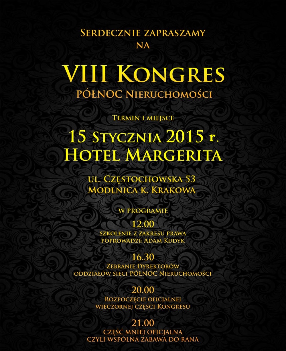 VIII Kongres PÓŁNOC Nieruchomości , który odbędzie się 15 stycznia 2016 roku w Hotel & Restauracja Margerita, ul. Częstochowska 53, 32-085 Modlnica.